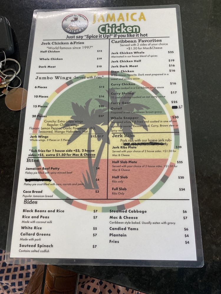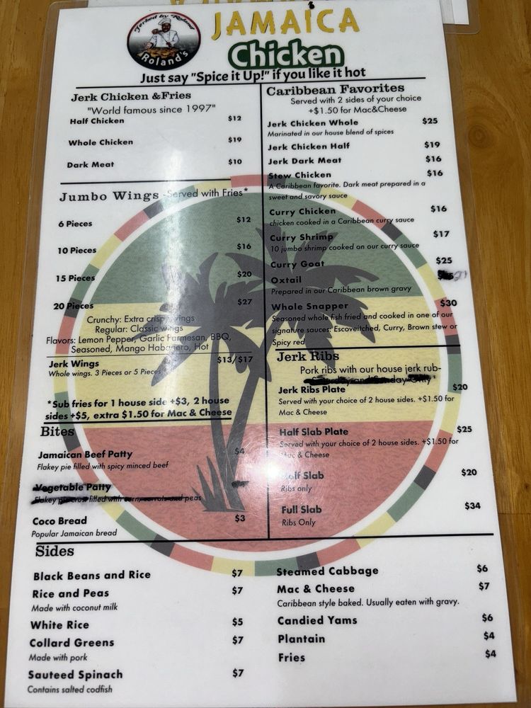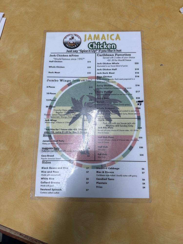 Roland’s Jamaican Chicken Menu (Update 2025)